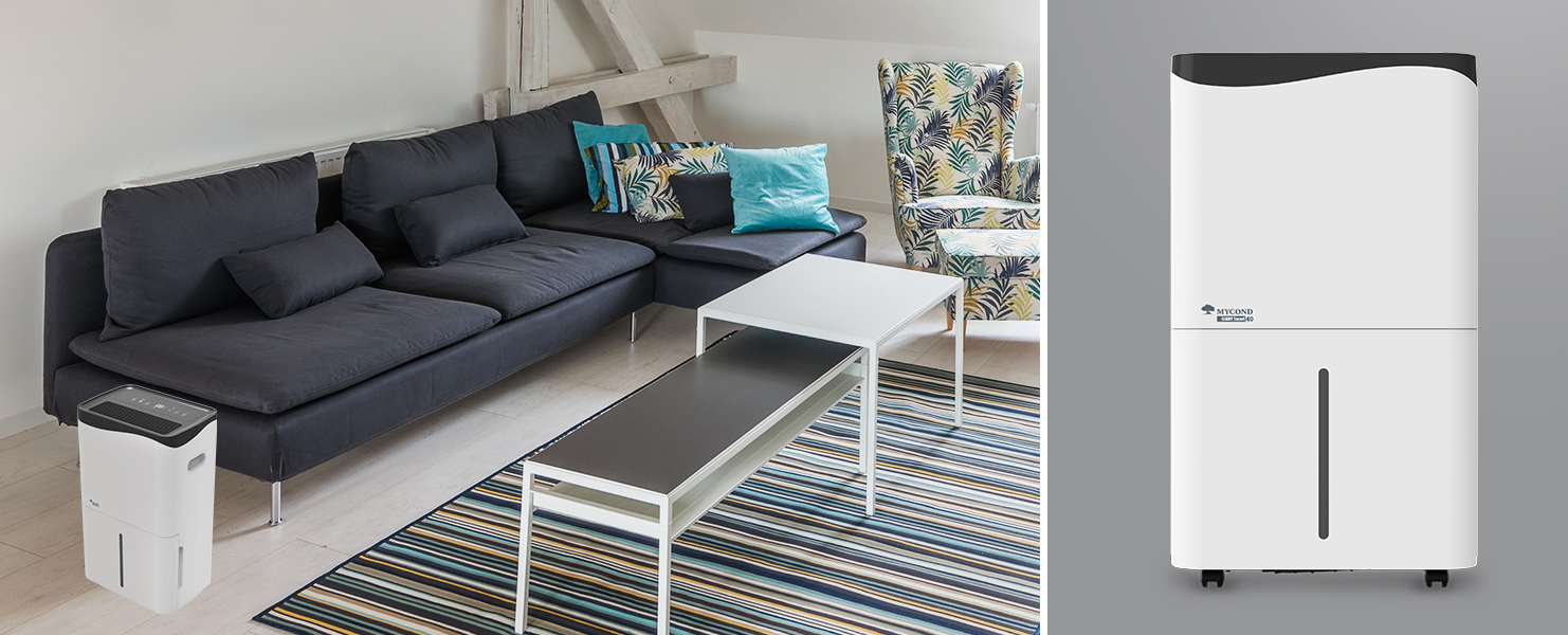 Osuszacz powietrza MYCOND Giant Smart 50 szybko wyeliminuje pleśń, pozbędzie się kondensacji i sprawi, że powietrze w domu lub pomieszczeniach komercyjnych będzie zdrowe i bezpieczne.